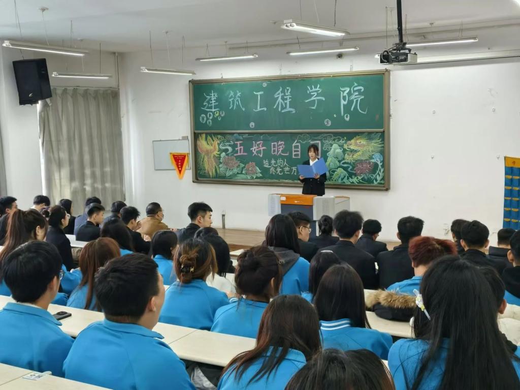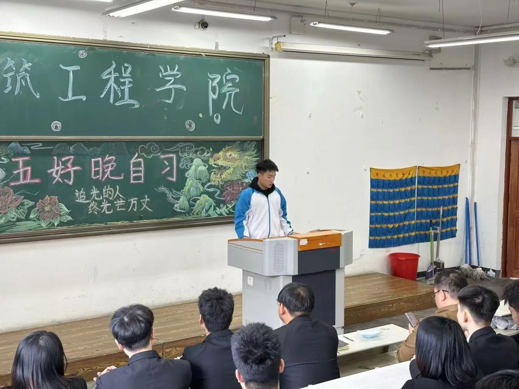 为树立榜样、激励学生积极进取,营造优良学风,2024年12月16日,建筑工程学院于清华楼西J201教室开展 2024 - 2025 学年第一学期“五好晚自习”“文明班级”表彰活动,学院学管办主任张钧铭、学生组织主要成员及2024级各班级学生代表参加本次活动。