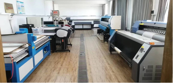 建筑装饰生产性实训基地配备了专业级石材雕刻机、UV平板喷绘机、广告喷绘机、广告喷绘机、旗帜喷绘机、效果图打印机等10余台设备,可容纳40人同时开展项目实训。主要用于室内陈设、非遗展示品设计与制作、非遗文化创意技能实训等课程的一体化教学,也可实现线上授课和线下实践操作相结合。满足建筑装饰、室内设计、数字非遗等专业的教学需要。