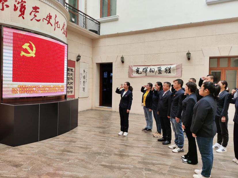 参观结束后,全体党员干部在纪念馆宣誓厅,举起右手,面向党旗,满怀忠诚,庄严宣誓,再次重温入党誓词。
