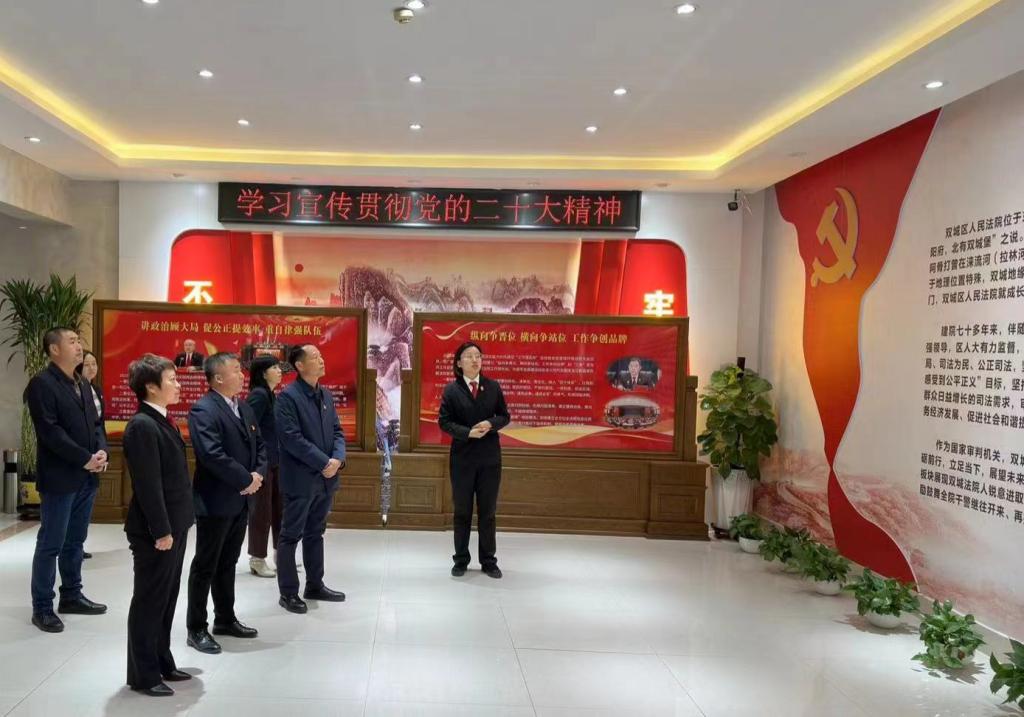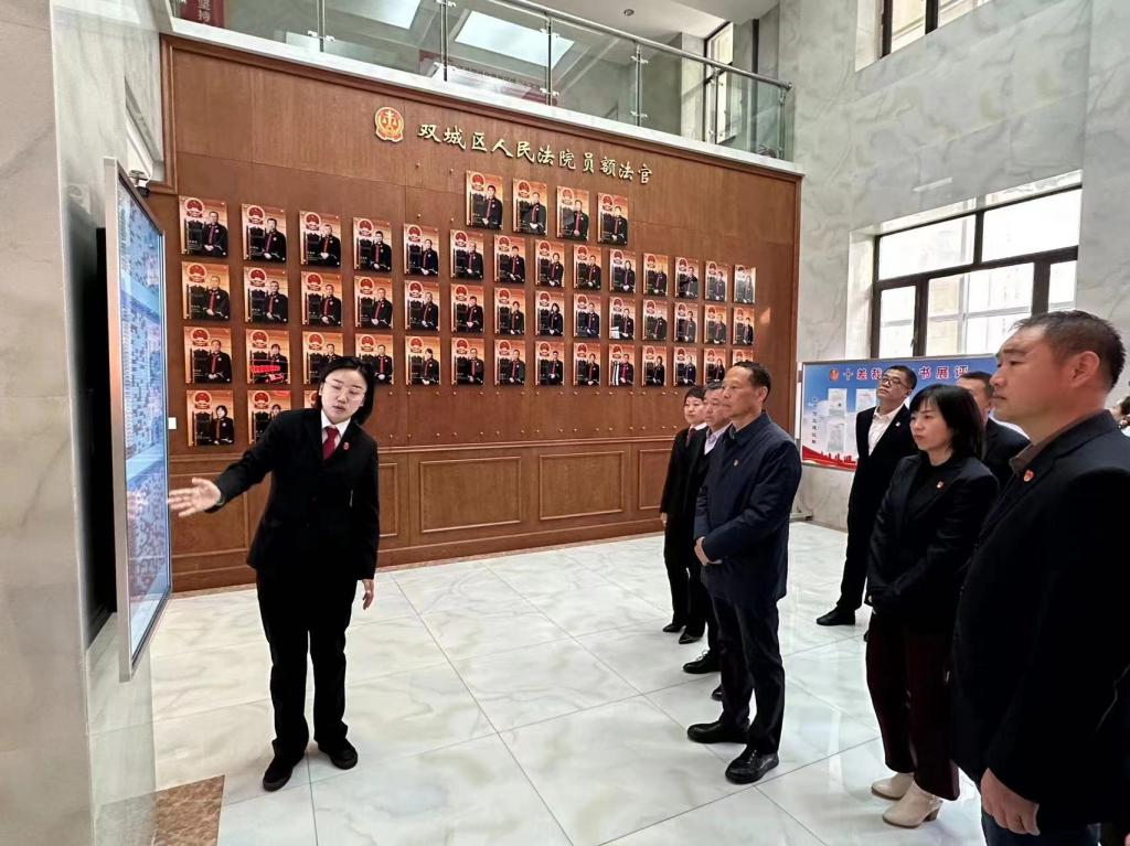 在讲解员的引导下,参观了法院院史墙、员额法官墙、裁判文书展评、科技大法庭、诉讼服务中心、干警活动室、执行指挥中心等场所,详细了解了法院办理诉讼业务流程和立案审判执行全过程,并且通过电子屏观看了现代信息化办案建设成果。