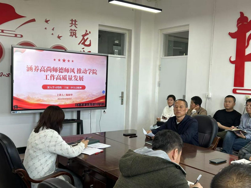 陈书记从深入学习党的二十届三中全会决定的深刻内涵、以党的二十届三中全会精神为指导落实全面深入教育综合改革要求、以党的二十届三中全会精神为指导以教育家精神引领师德师风建设推动学院工作高质量发展三个方面进行了解读和宣讲。