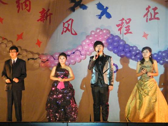 食品工程系于2010年11月6日隆重举行“畅想别后思念,共叙美好未来”新老生联谊会。 这次晚会是新生的盛会,更是食品工程系所有师生的盛会。我们本着弘扬新世纪大学生的精神风貌,丰富大学生的人文气息,加强大学生文化交流的宗旨,在广大师生努力学习科学知识的同时,注意对同学各种才能的挖掘,以文艺活动的形式展示年轻一代对美的追求,对文艺的理解和对生活的热爱。 通过这次晚会,调动了大学生对工作的积极性和主动性,还锻炼了一种热情、积极向上的良好精神风貌。 演员阵容强大,实力派主持人登场 杜宏宇老师在演唱