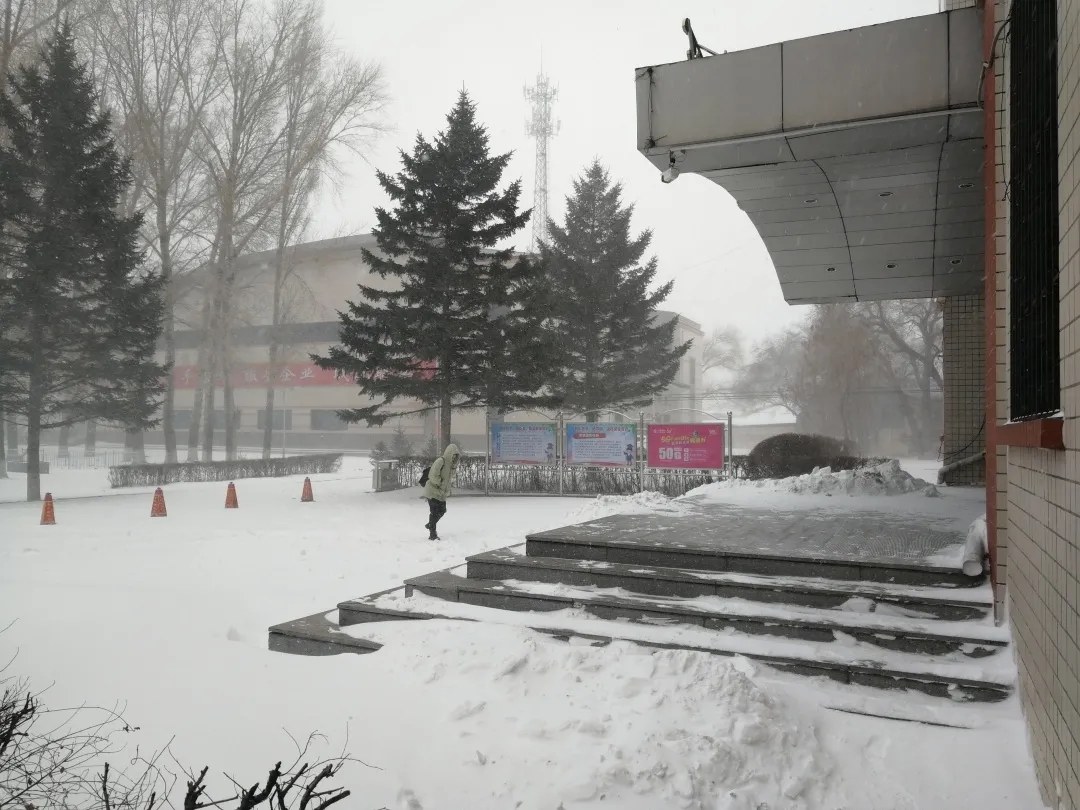 现在的校园已经是白茫茫的一片但是大雪也抵挡不住上课人的脚步他们在无尽的教学楼中来回走位只为学无止境的求索上课人上课魂,按时上课的都是人上人