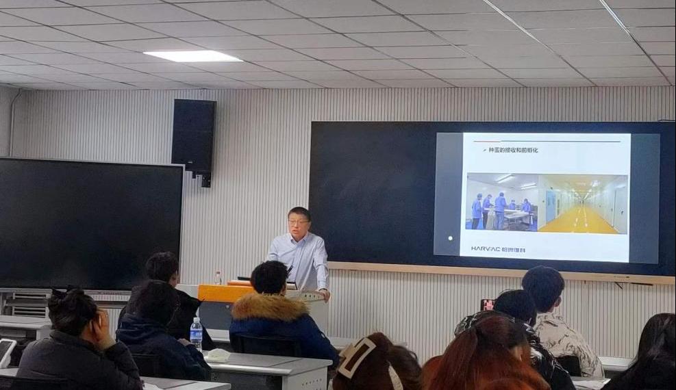 刘老师为学生们带来了一场题为“生物制品生产检验”的专题培训。通过培训学生了解到了生物制品行业的发展前景、疫苗的生产流程以及检验程序。整场培训气氛热烈、学生积极热情,刘老师生动幽默又专业的讲解赢得了学生的阵阵掌声。