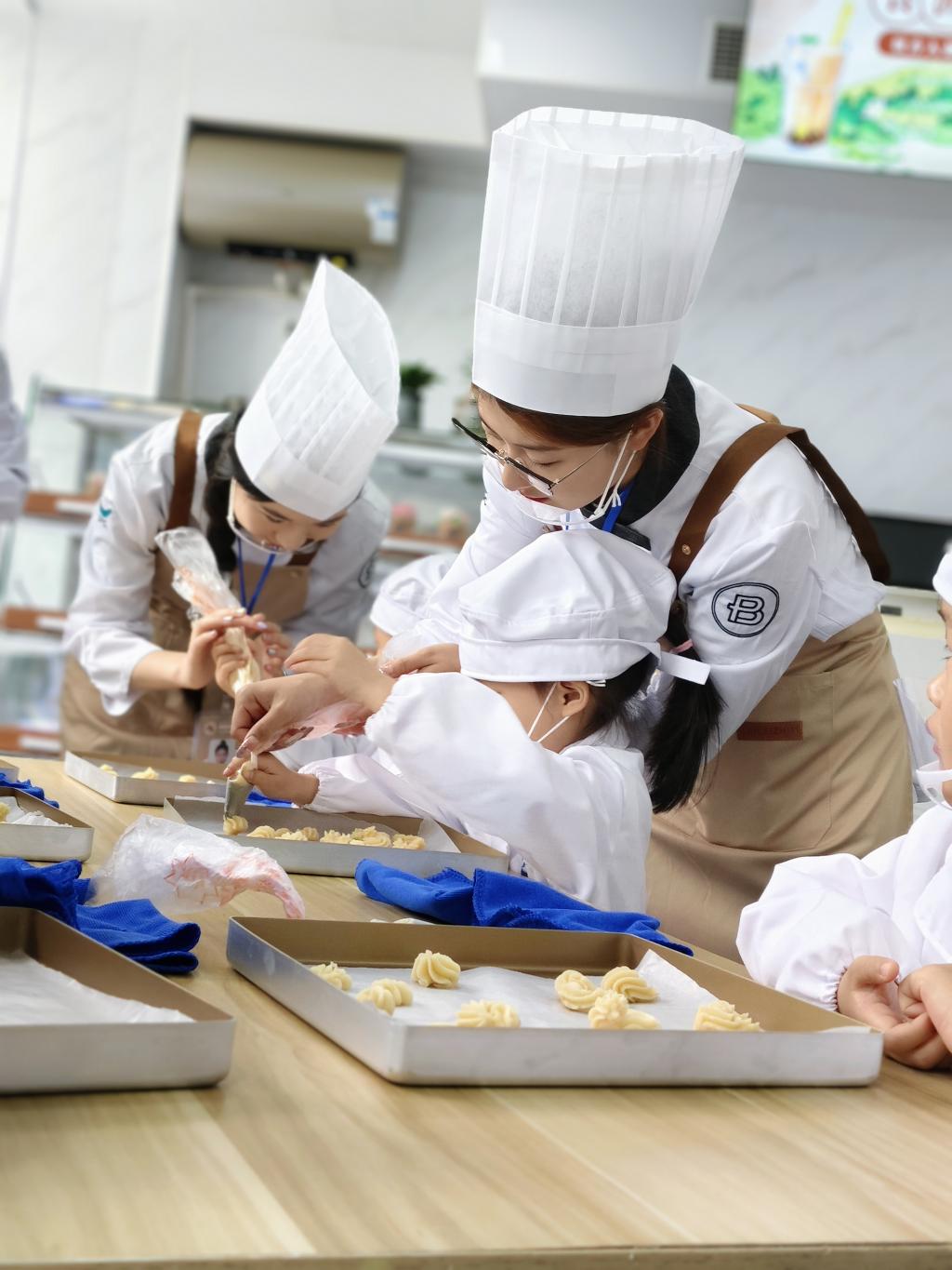 活动中,专业教师为孩子们介绍了烘焙师的职业特点,分享了全国技能大师成才之路并以大家非常喜爱的曲奇饼干为载体,传授饼干知识和制作技能。在专业指导教师和创研社会员学生的一对一指导下,小朋友们纷纷动手制作并充分发挥了自己的想象力,创作出了不同形状的曲奇作品。在等待烘烤的过程中,小朋友们积极发言分享自己的收获和感受,现场气氛热烈和谐。家长们也纷纷表示这是孩子们过得最有意义的儿童节。