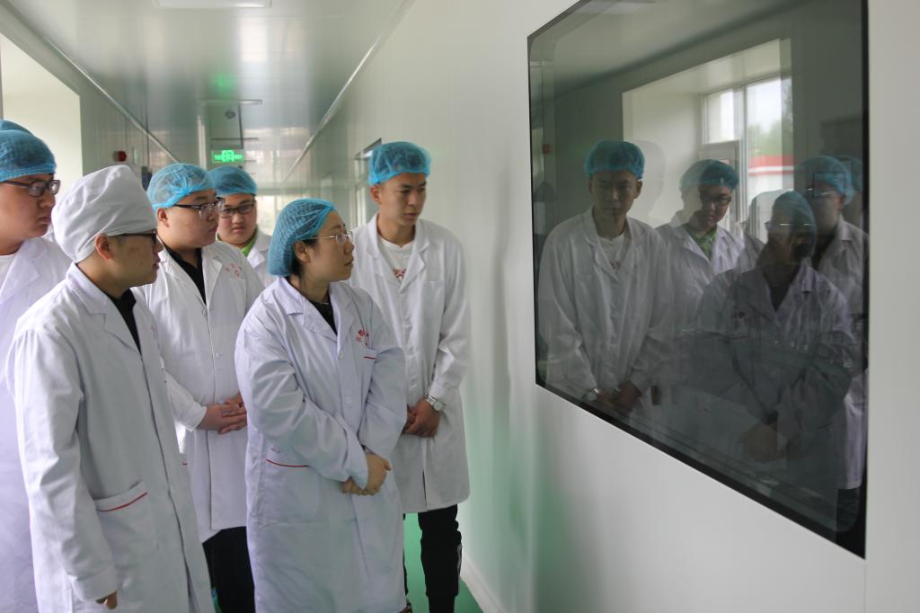 同学们在人力资源陈经理的带领下,参观了企业生产车间,了解到目前企业先进的生产线及检测设备。企业向我们展示了企业药品生产领域的高科技成果。参观期间,同学们积极提问,讲解人员耐心细致的为同学们解答。