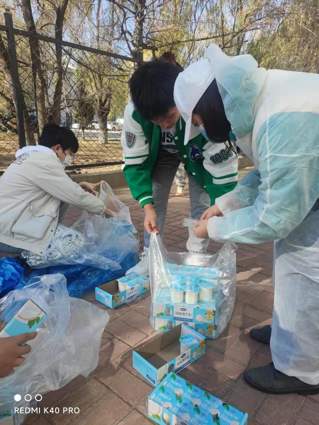 (王丽老师带领学生志愿者分餐中)