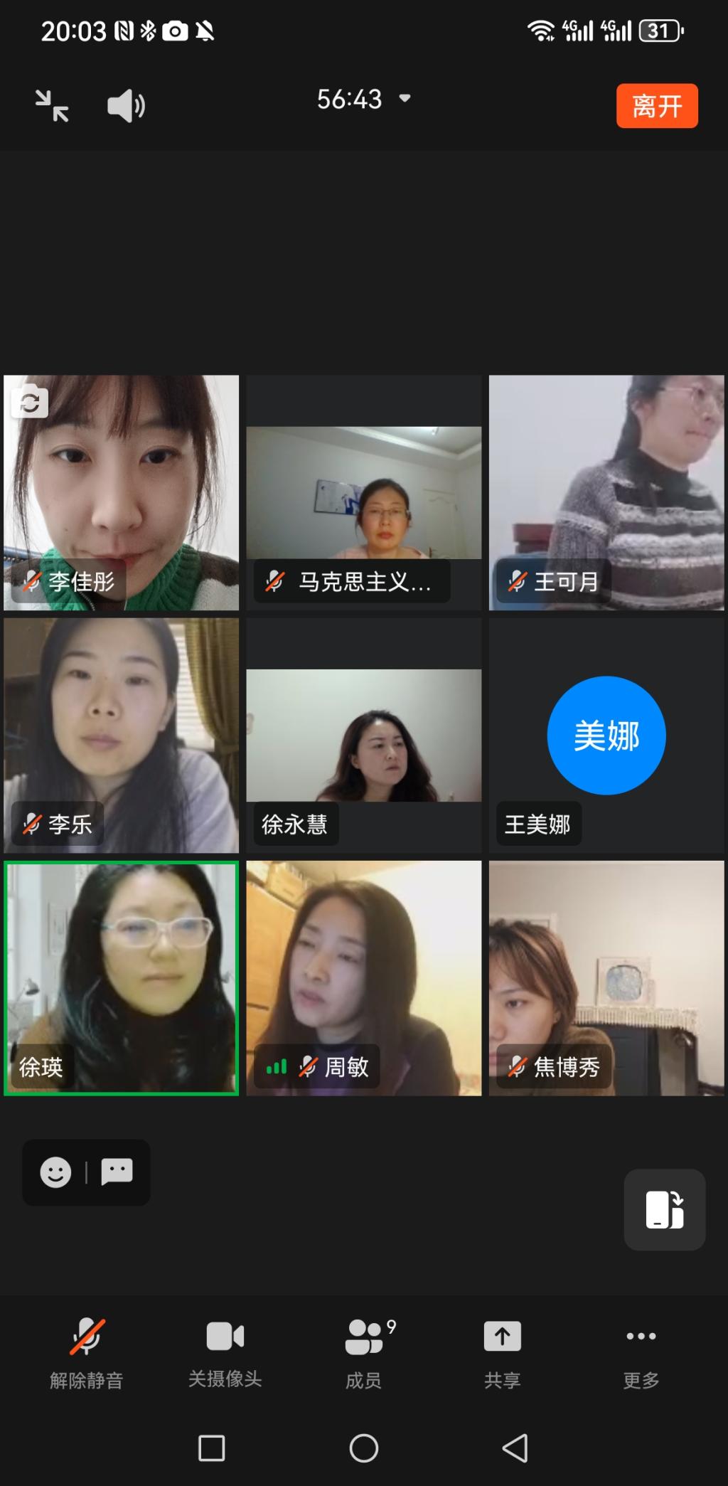 1月30日,德育教研室就《思想道德与法治》第六章内容开展线上集体备课,教研室主任徐永慧主持会议,马克思主义学院副院长徐瑛及全体德法课授课教师参会。