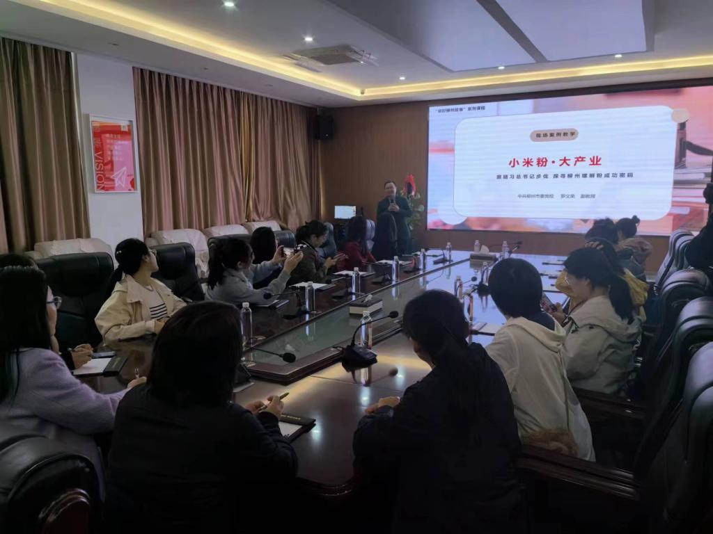 追随总书记的足迹,教师们来到螺蛳粉企业(善元食品有限公司)考察学习,聆听了一堂精彩纷呈的案例教学。罗文荣教授以“一碗粉的‘大产业’之路”为题,以螺蛳粉产业发展历程为案例,探寻了产业的成功密码,深刻剖析了产业发展背后的理论依据:从供给侧结构性改革到高质量发展,再到新结构经济学以及市场与政府的关系,总结出只有“有效市场”与“有为政府”共同作用,才能推动经济结构的转型升级和经济社会的发展。这场案例教学让在座的各位老师们感触颇深,踊跃发言。