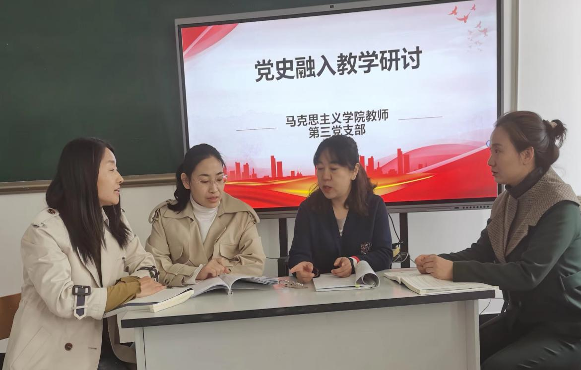 马克思主义学院教师第三党支部开展主题党日活动,组织党员教师研讨2024年2月中共中央印发《党史学习教育工作条例》。《条例》明确指出,“用好学校思想政治理论课渠道,推进大中小学思想政治教育一体化建设,推动党史进教材、进课堂、进头脑,发挥党史立德树人的重要作用。”为贯彻落实中央精神,结合本学期的思政课程内容,把党史有效融入思政课教学中,党员同志们学文件、悟思想、讲党史、扬斗志,同志们在研讨中分享了如何将党史融入思政课教学。