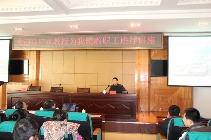 马书记同时兼任教育部商业教学指导委员会委员、中国高职研究会副会长、教育部市场营销专业委员会主任等职务。讲座内容囊括职业院校教师的使命、当代中国道德教育的困扰与重构、职业院校学生的道德培养、市场营销专业的未来发展方向、市场营销专业资源库的整体建设情况等多个高职教师关注的课题,讲座现场互动频繁、气氛热烈。