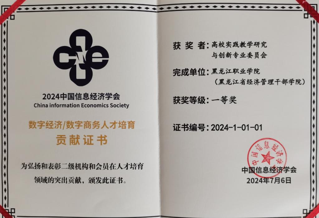 在大会颁奖环节,学会副理事长兼教育教学工作委员会主任、中央财经大学校长助理陈斌开教授宣读了2024年中国信息经济学会数字经济/数字商务人才培育贡献荣誉名单,由学校担任主任单位的高校实践教学研究与创新专业委员会荣获人才培育一等贡献二级机构。