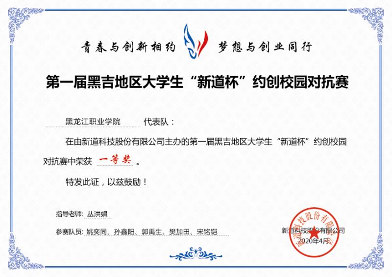 在约创校园对抗赛中丛洪娟老师指导的龙职一队,参赛学生:姚奕同、孙鑫阳、郭禹生、樊加田、宋铭铠获得一等奖;初蕾老师指导的龙职二队,参赛学生:王曼、高清雪、郭章玉、臧思彤、牛富良获得二等奖。在数字营销对抗赛中丛洪娟老师指导的姚亦同、王曼、高清雪和宋铭铠获得二等奖。