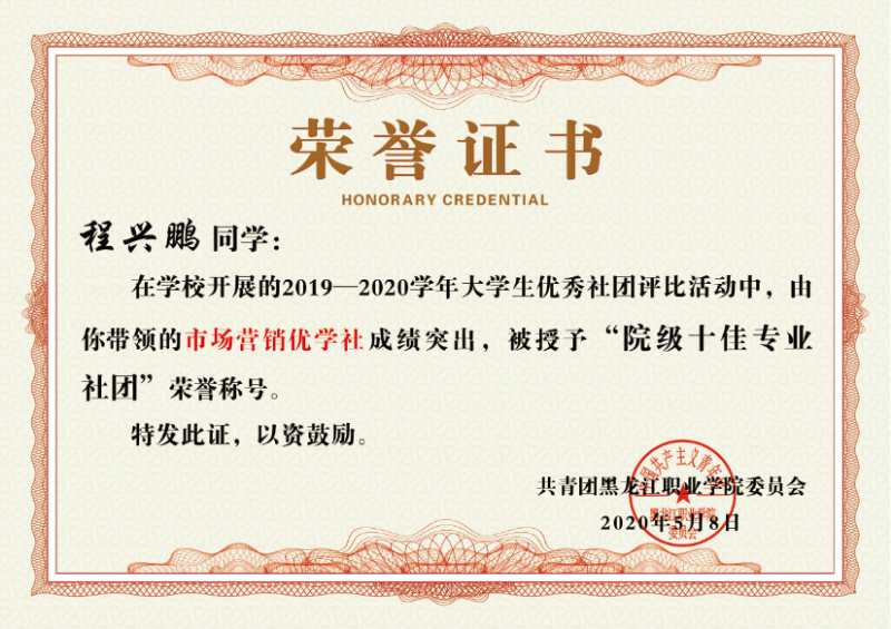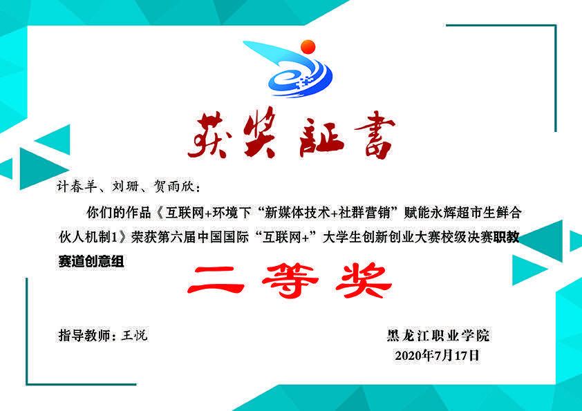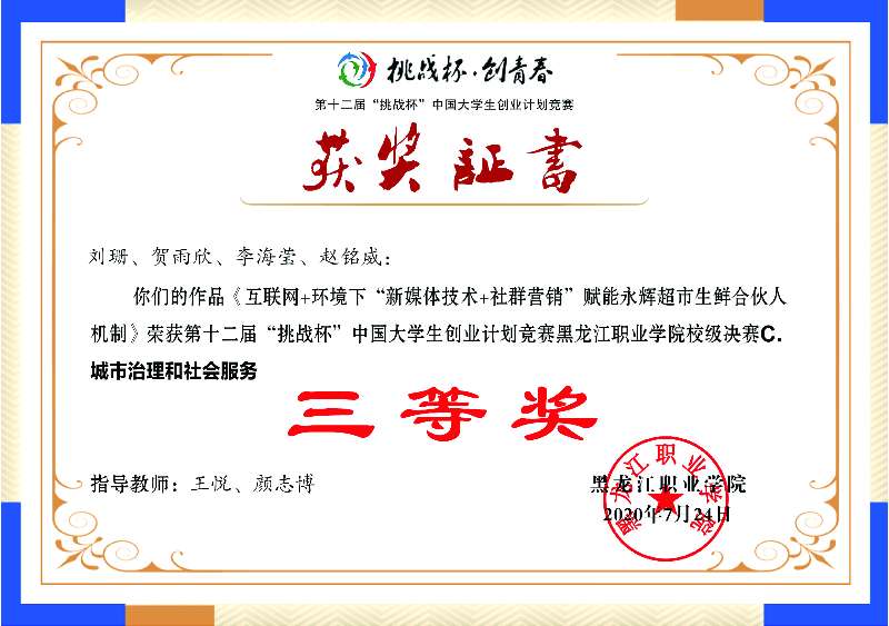 今年5月,由孟璐老师指导的市场营销优学社和李金立老师指导的龙鉴历史社在伟德官网所有社团的评比中,以优异的成绩获得了校级“十佳社团”荣誉称号。7月,由王悦老师指导的营销策划社团在伟德官网第六届中国国际“互联网+”大学生创新创业大赛校级决赛(创意组)中荣获二等奖,并在第十二届“挑战杯”中国大学生创业计划竞赛校级决赛中荣获三等奖。市场营销技能协会在韩松男老师的带领下,连续6年获得黑龙江省市场营销技能大赛一等奖,曾在2014-2015年蝉联全国一等奖的优异成绩。