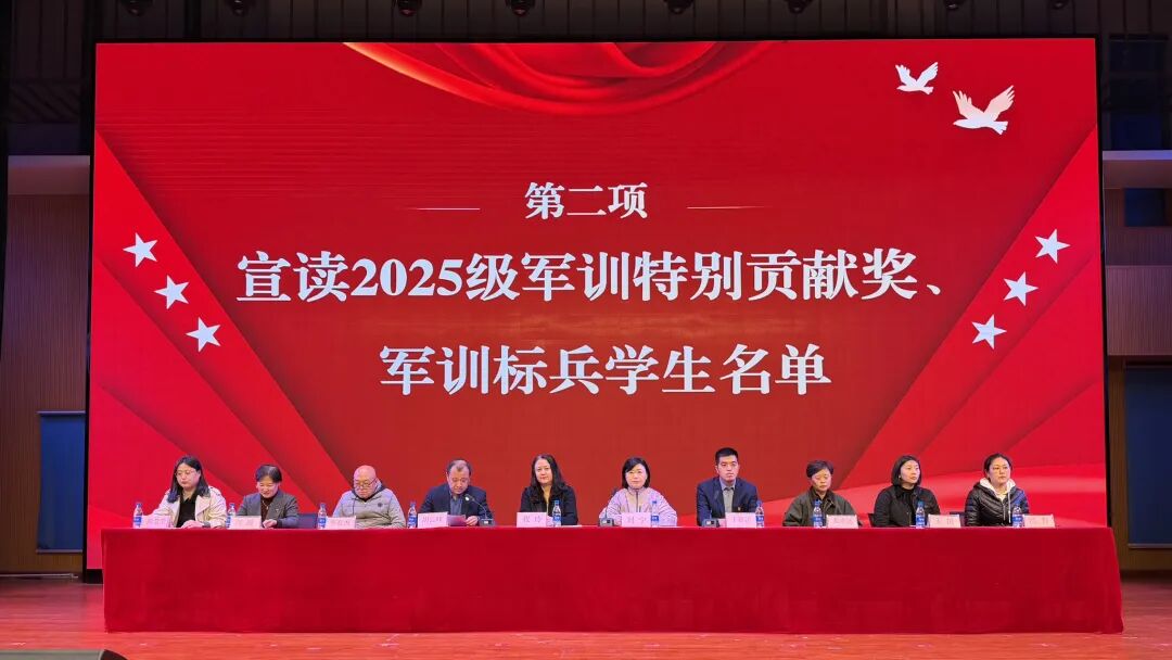 数字商贸学院教学工作负责人胡云峰宣读数字商贸学院2025级军训特别贡献奖及军训标兵学生名单。