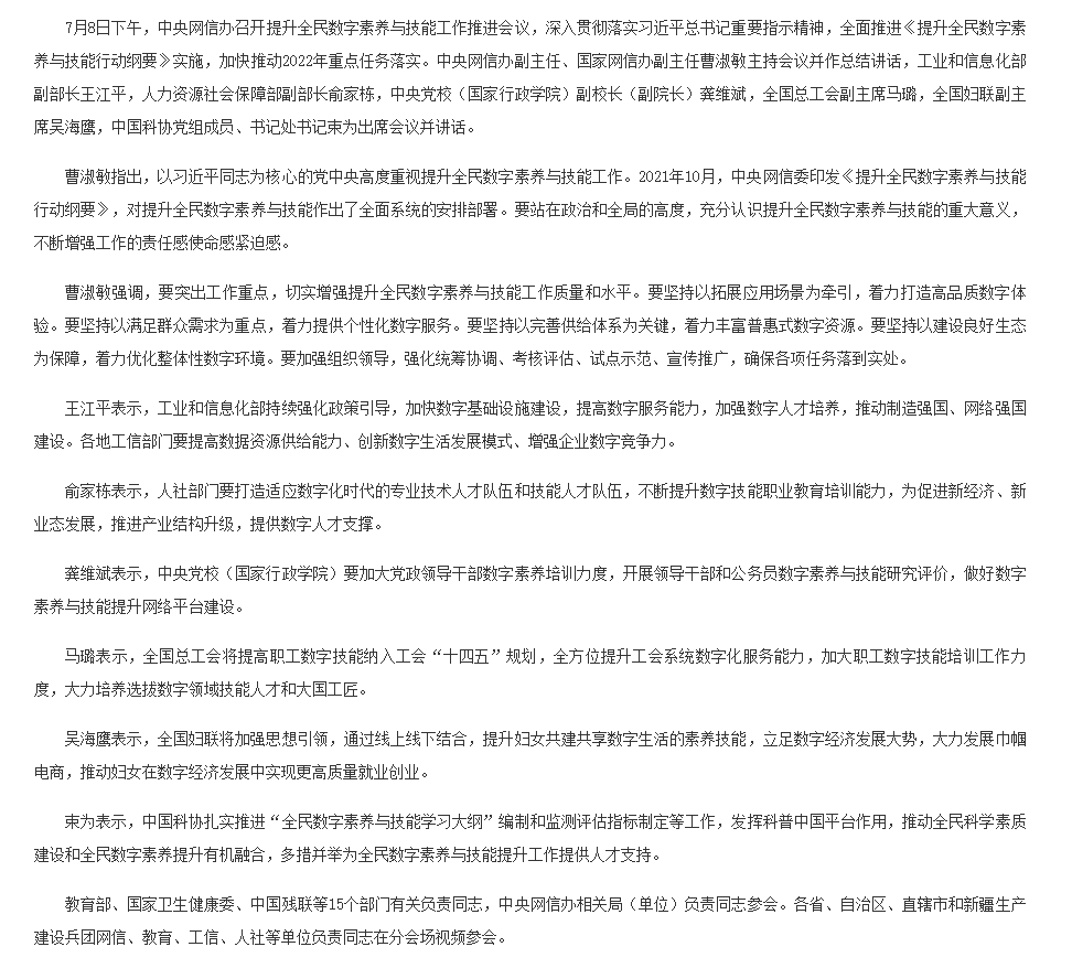 中央网信办召开提升全民数字素养与技能工作推进会议