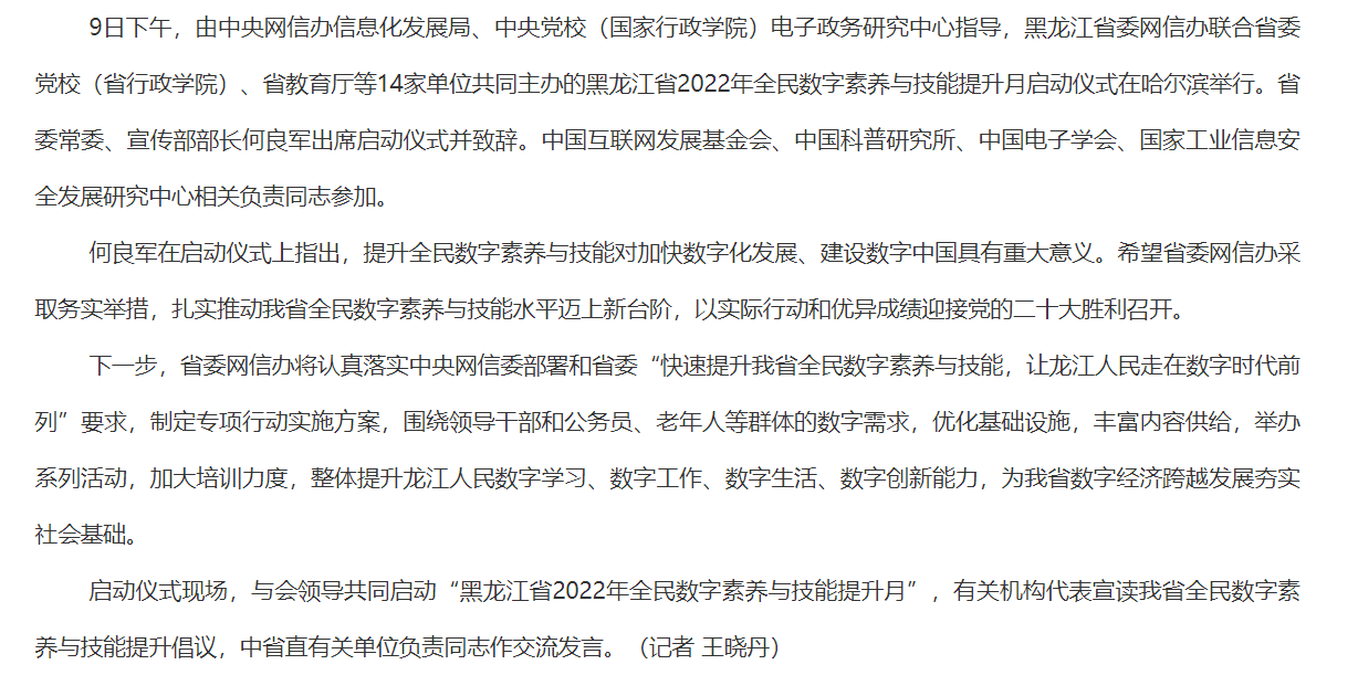 黑龙江省2022年全民数字素养与技能提升月启动