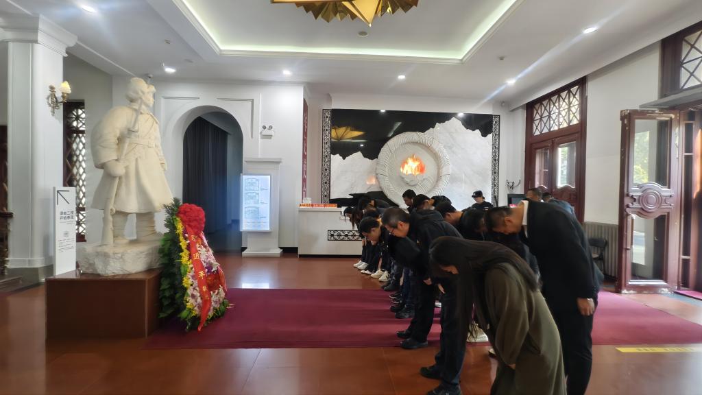 活动首先在纪念馆大厅内,全体党员同志向革命烈士雕像进行默哀鞠躬,诚挚地表达对革命先烈的深切缅怀和最崇高的敬意。
