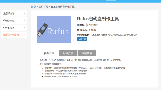 (2)点击Rufus,跳转到下载页面,点击立即下载;