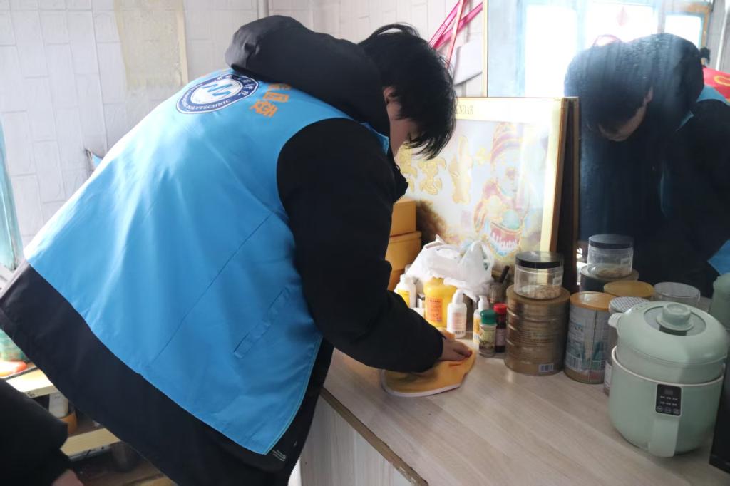 活动当天,志愿者们早早集合,带着清洁工具来到老人家中。大家分工明确,有条不紊地进行打扫。有的志愿者仔细擦拭家具灰尘和厨房油污,有的认真清扫地面垃圾,还有的帮忙整理衣物和物品。过程中,师生们亲切地与老人聊天,关心他们的生活状况和身体情况,倾听他们的心声,欢声笑语充满了房间。