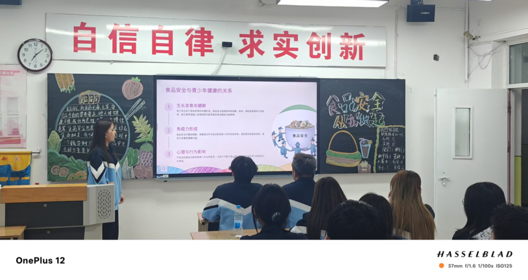 学生们讨论分析了因食品安全问题导致的食物中毒事件的原因,如食品加工过程不规范、食品储存不当、食品添加剂超标等;同时还分享了健康饮食的小常识,如合理搭配膳食、多吃新鲜蔬菜水果、少吃垃圾食品等......通过本次主题班会,同学们深刻地认识到食品安全的重要性,明白了许多关于保证食品安全的实用知识。大家纷纷表示将自觉抵制不安全食品,不购买“三无产品”,选择正规商店购买食品,养成良好的饮食卫生习惯。