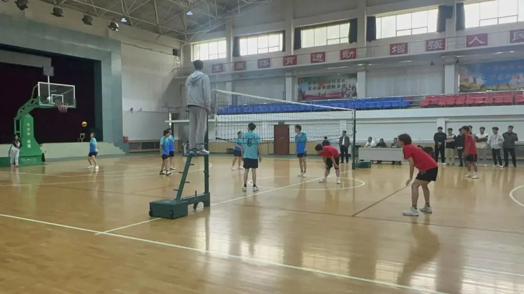 赛场上,队员们默契配合,奋力拼搏,发球、传球、垫球、网前击球,每个动作都展现出扎实的基本功和顽强的拼搏精神。