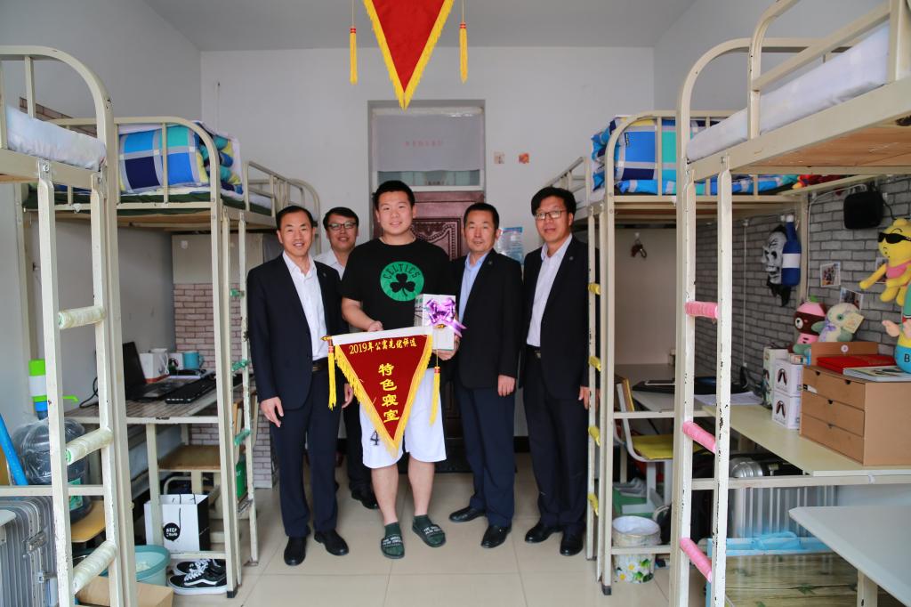 在检查过程中,周家郁书记亲自给以上获奖寝室颁奖,并与获奖寝室学生亲切合影,并对寝室标准化建设提出要求和希望。
