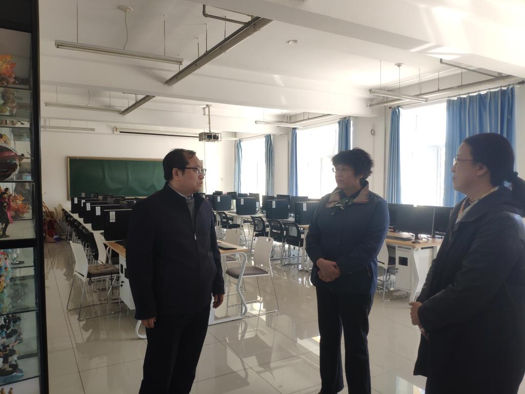 调研期间,崔治春走访了信息工程学院人工智能技术应用、动漫制作技术及信息技术基础等实训室,调研了实训室软硬件环境,教学教研等项目开展情况,听取了信息工程学院党总支书记金忠伟的工作汇报,并就学院建设、专业发展、教师团队建设、学生人才培养等相关问题进行了讨论。
