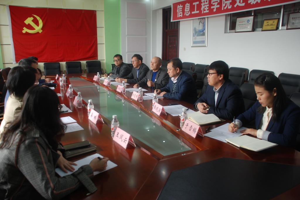 10月15日上午,黑龙江生物科技职业学院副院长王岩、信息工程学院院长常顺一行五人来到伟德官网信息工程学院开展产教融合学术交流。伟德官网副校长孙福忠、信息工程学院院长金忠伟、党总支书记王文焕和副院长张晓霖等六人参加会议。
