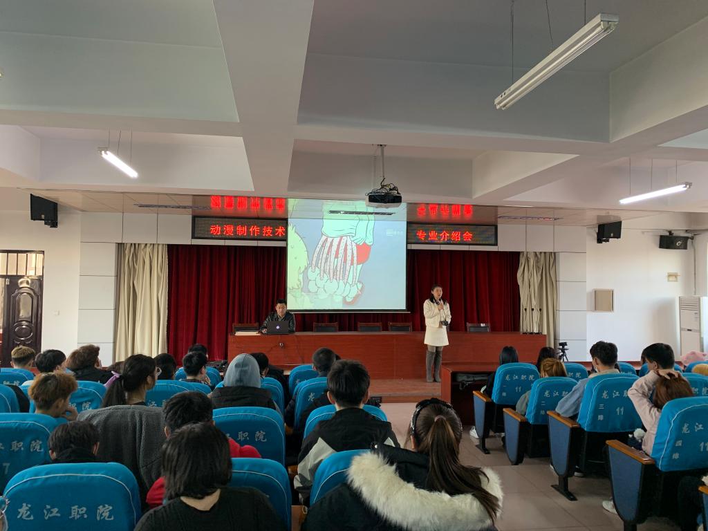 首先,张老师对目前动漫行业现状及未来动漫行业发展趋势做了详细介绍,期间同学们与张老师积极互动,提出了许多关于动漫方面的专业问题,张老师耐心解答。第二个环节是于老师进行专业人才培养介绍。于老师主要从专业基本建设情况、人才培养目标及核心能力、就业岗位及职业资格证书三个方面为同学们进行了详细介绍。从同学们关心的就业岗位到在校三年应该学习完善哪些能力,于老师都为同学们进行了详细说明,最后她还向同学们提出了在校期间完成的五件事:1、完整的读十本书;2、练一手好字;3、过一个英语等级考试;4、大学期间不挂科;5、独立完成一件有意义的事。