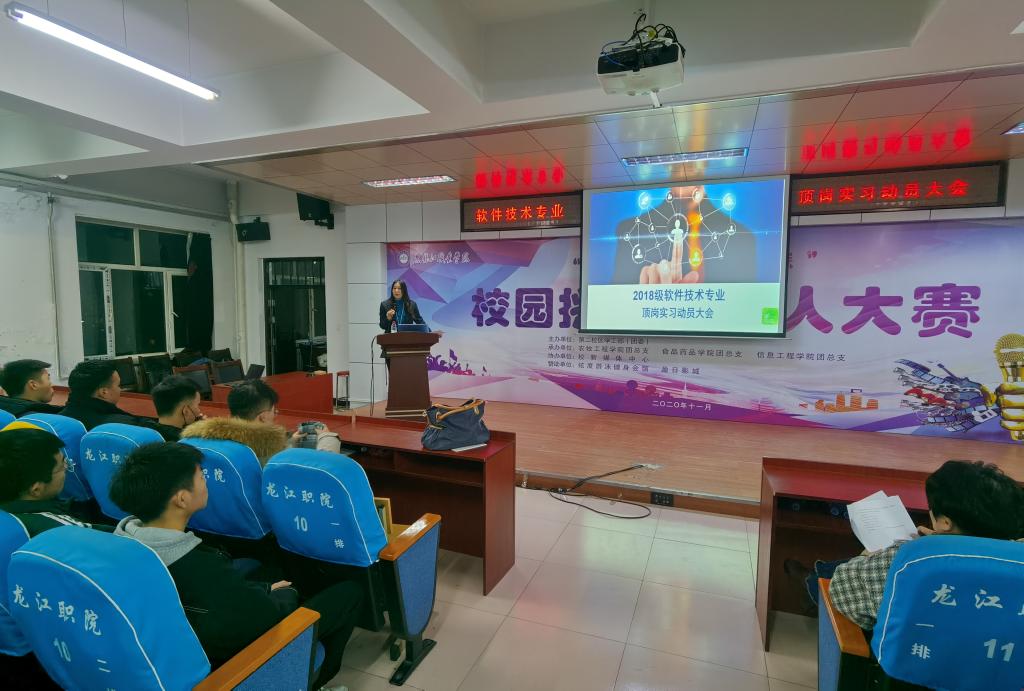 2020年11月5日,软件技术专业在学校大会议室召开2018级学生顶岗实习动员大会。会议由软件技术教研室主任张兴华老师主持并发表讲话。在会议中张老师首先向同学们讲解了顶岗实习在软件技术专业课程体系中的重要地位,顶岗实习如何有效促进学生就业等,详细阐述了顶岗实习环节的重要性,要求同学们要高度重视顶岗实习,认真完成顶岗实习任务。在会议中,张老师反复强调顶岗实习过程中最重要的一点是安全实习,认真解读了实习安全的各种注意事项,包括生产岗位安全、人身安全、财产安全等多方面。最后张老师为同学们细致的讲解了顶岗实习的流程,帮助同学们解答关于顶岗实习所存着的问题和疑虑。