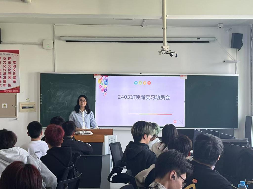 在实习单位介绍环节,指导教师张玮宏老师详细介绍了本次顶岗实习的具体安排,包括学生注册绑定工学云APP、信息确认、实习申请填写、岗位审核、实习协议签订等关键步骤。张玮宏老师强调,未按规定签订实习协议的学生不得安排实习,确保每位学生都能在合法合规的前提下开始实习。她提到,学校已与多家知名动漫企业建立了合作关系,为学生提供了涵盖动画制作、角色设计、场景构建、后期特效等多个领域的实习岗位,确保每位学生都能在实习期间获得实质性的成长。