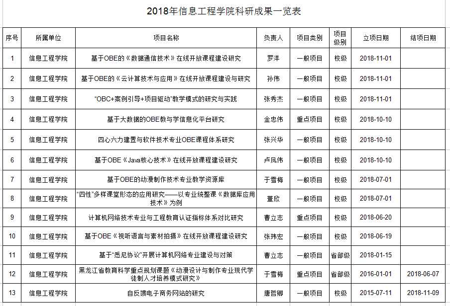 2018年信息工程学院科研成果一览表