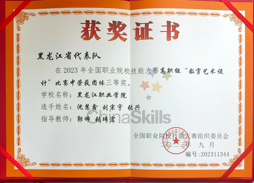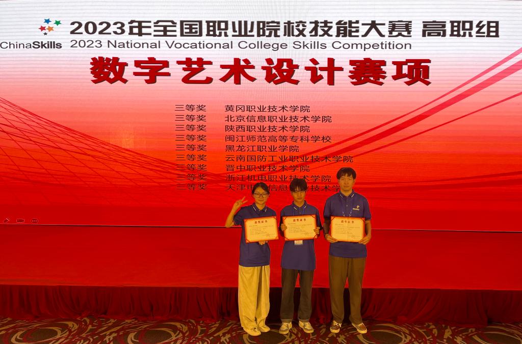 9月24-27日,2023年全国职业院校技能大赛“数字艺术设计”赛项,在天津中德职业大学落下帷幕,伟德官网信息工程学院动漫制作技术专业学生沈慧鑫、刘宗宇、张兴经过8个小时的激烈竞争,最终取得了团体三等奖的好成绩。