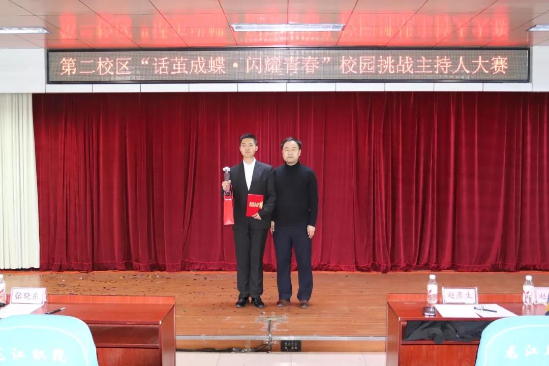2019年11月27日,由bevictor伟德官网第二校区学工部主办、校新媒体中心承办的“话茧成蝶,闪耀青春”挑战主持人大赛,在二号教学楼六楼会议室成功举行。学工部副部长赵彦生、各二级学院学工副院长、团总支书记参加活动,大赛邀请具有专长的校区教师、犸林文化有限公司代表共计7人组成评委团,与240余名观众共同欣赏了选手们的精彩表现。