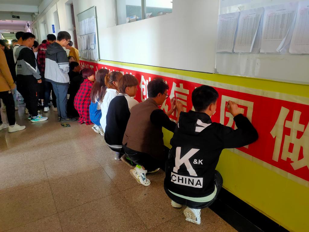 诚信主题签名活动,由班级干部带领在诚信横幅上签下自己的名字,诚信从我做起。活动当天,现场签名踊跃,参与学生络绎不绝。各位同学在宣传标语上签下名字,以此表示自己对诚信活动的支持与响应。通过此次签名活动,加强了我院对诚信教育的宣传,为扎实有效推进相关工作奠定了良好基础。