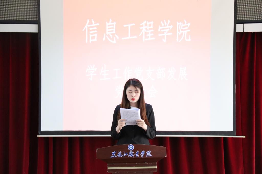 会议严格按照党组织接受预备党员程序,孙海洋、王佳妮等40名重点发展对象逐一宣读《入党志愿书》,并向党组织汇报自身对党的认识、入党动机、个人经历以及在校表现等,随后入党介绍人向大会介绍其主要政治思想、学习、工作生活等情况,支部书记张晓霖同志向大会报告其现实表现的考察情况以及综合政治审查情况,经与会正式党员投票表决,全票通以上40位同志转为预备党员。