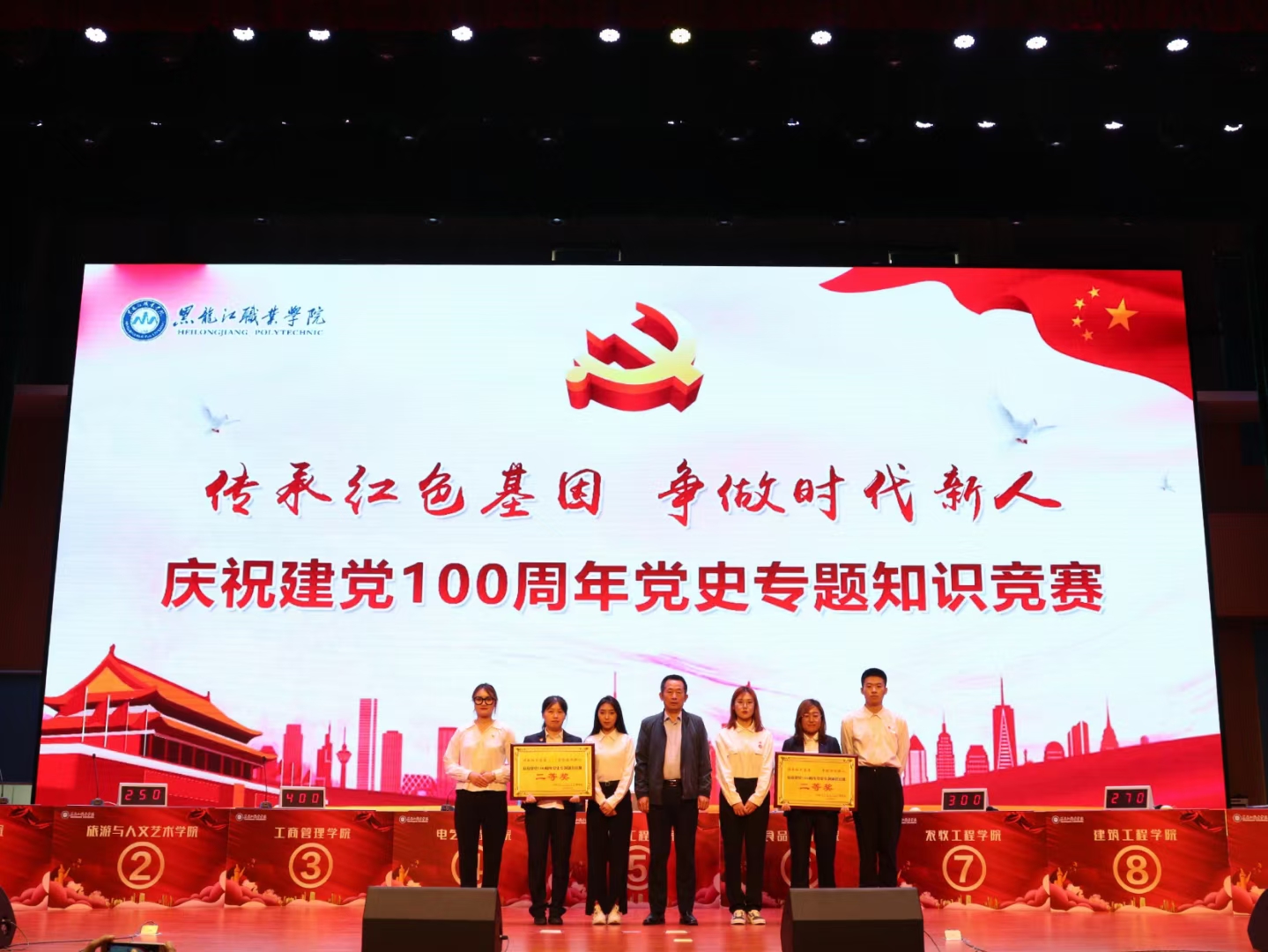 为进一步推动党史学习教育走深走实,庆祝中国共产党成立100周年,切实做到学史明理、学史增信、学史崇德、学史力行,不断适应新时代要求,在6月4日下午,由学校党委组织部主办、校团委承办“传承红色基因·争做时代新人”庆祝建党100周年党史专题知识竞赛活动在一校区工匠楼礼堂隆重举办。