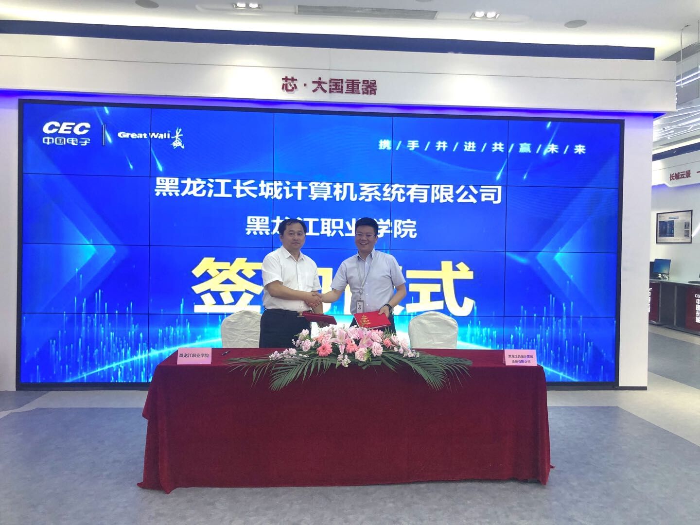 活动期间,双方共同参观黑龙江长城计算机系统有限公司展示中心与生产车间。黑龙江长城计算机系统有限公司是中国电子旗下子公司,是我国高斯电子产品及技术的重要提供者,是国内领先的信息服务提供者,带动了中国本土信息化服务能力,为构建国产品牌自主创新做出了杰出贡献。