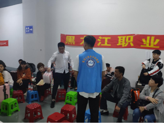 在车站和校园的各个迎新站点,处处可以看到“蓝马甲”们挥洒汗水的微笑,他们帮助新生提拿行李、引导报到、协助缴费......体贴热情,服务周到,展现了龙职学生干部的风采。