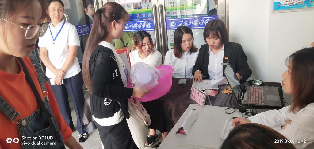 9月3——5日,是学校2019级新生报到的日子。按照学校迎新工作部署,本着“热情、优质、高效、便捷”的原则,第二校区于8月30日结合实际工作,召开校区迎新工作协调会,进一步传达学校迎新工作精神,对迎新工作的相关要求和具体细节进行周密布置,确保迎新工作的有序进行。在各部门积极配合、各二级学院精心组织、全体工作人员热情服务下,为期三天的迎新工作顺利完成。截至9月5日下午15:30,高职新生报到1504人,中高职贯通报到96人,共计入校新生1600人。