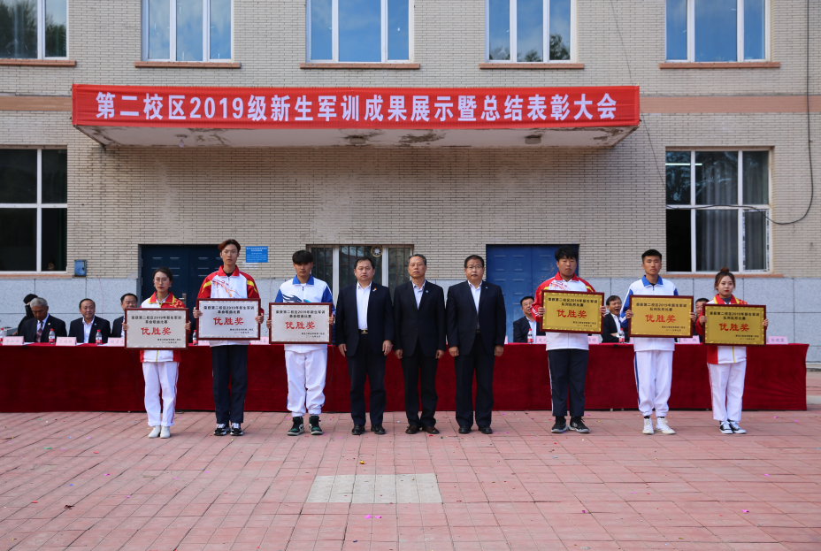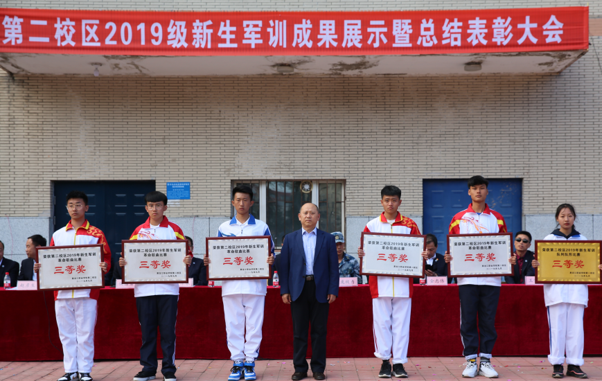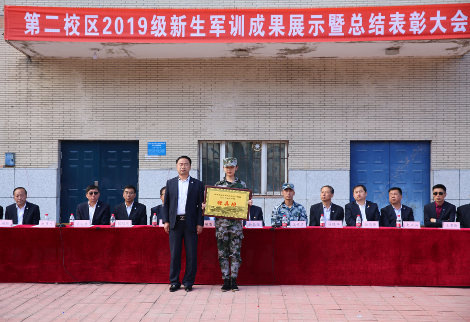 军训成果展示在全体参会人员迎国旗、唱国歌的庄严氛围中拉开序幕。大会上,获奖连队代表在教官的指挥下,分别进行了军训队列队形和革命歌曲演唱表演,同学们以坚定的步伐、饱满的热情、多样的形式、突出的主题和充满创意的演绎,为新中国成立70周年献礼,场面热烈,赢得在场师生和教官们的热烈掌声。随后,与会领导为军训中获得奖项的集体和个人颁发证书、锦旗和奖牌。