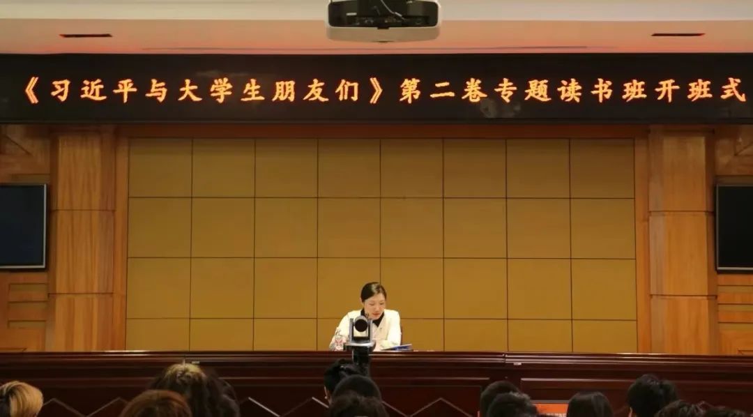 石倩书记她在讲话中指出,《习近平与大学生朋友们》(第二卷)是一本指引青年学生健康发展的成长之书,是一堂激励青年建功时代的思政大课,是一份青年工作者潜心研习的学习宝典,我们要发挥共青团在高校学生思想政治工作中主力军作用,加强青年思想政治引领。广大团员和青年师生要真学真用,带领青年学生感悟领袖风范、牢记习近平总书记嘱托,学出对党忠诚的信念,学出强国有我的担当,学出心系人民的情怀。广大团干部要善学善讲,推动党的创新理论在青年学生中入脑入心入魂,坚持党建带团建,引领青年学生为中国式现代化建功立业、挺膺担当。