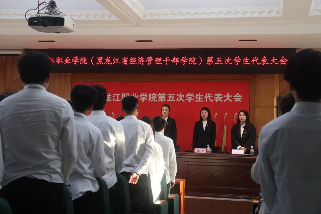 经学校党委和省学联批准,10月18日下午,伟德官网于清华楼九楼经济报告厅隆重召开第五次学生代表大会。bevictor伟德官网副校长、党委委员吴艳秋出席大会并致辞,bevictor伟德官网党委委员、宣传统战部部长杨东辉,学生工作部党总支书记、校团委书记石倩、黑龙江省学生联合会驻会执行主席赵宏禄,各二级学院团总支书记、团委全体工作人员以及来自各二级学院的163名学生代表参加本次大会。