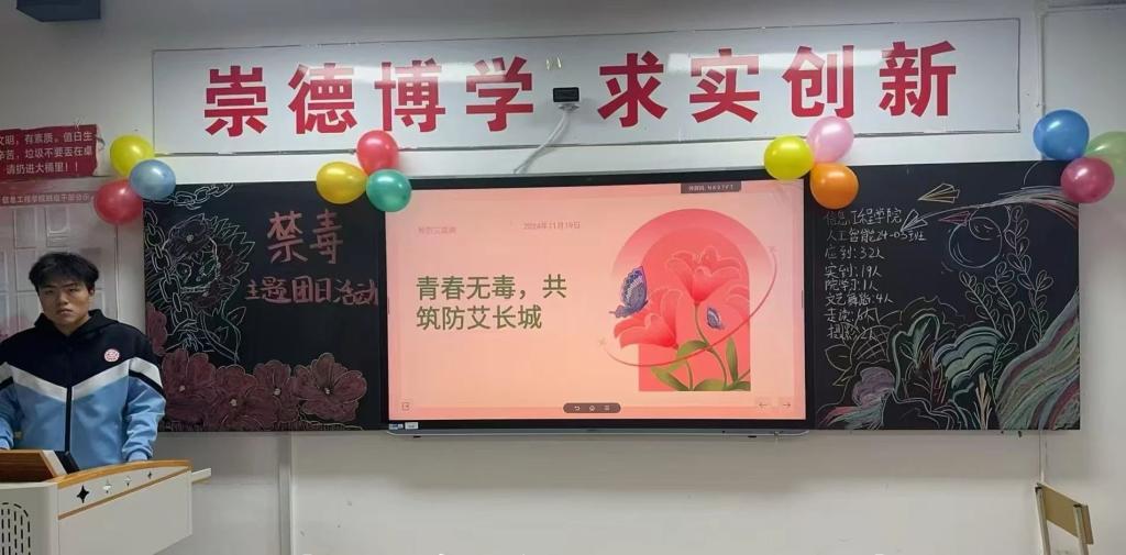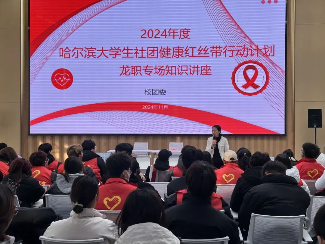 为增强学生的禁毒意识,普及艾滋病预防知识,培养学生健康的生活方式和积极向上的生活态度,为构建和谐社会贡献力量。校团委于11月17日—22日组织一、二校区共计175个团支部开展“青春无毒,共筑防艾长城”主题团日活动,本次团日活动还邀请到了哈尔滨市疾控中心吴风光老师,以“健康红丝带进校园”为题为同学们带来了一场防艾知识专题讲座。