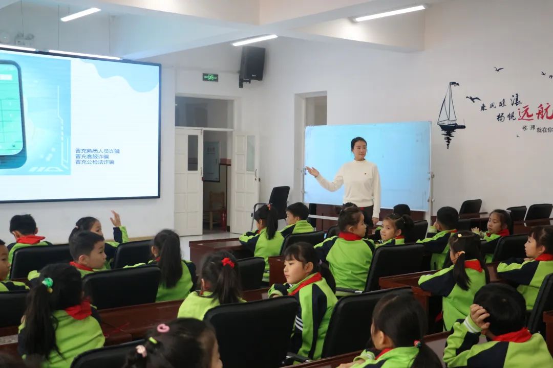 活动中,唐晓恬老师带领伟德官网青年志愿者为小朋友们送去了书籍、文具等学习用品。并带来了一场别开生面的反诈宣传课。用生动的案例、趣味动画,深入浅出地为小朋友们普及了反诈知识,让小朋友们认识到如何预防诈骗以及诈骗的常见手段。课堂上小朋友们积极互动,踊跃分享自己的学习心得。