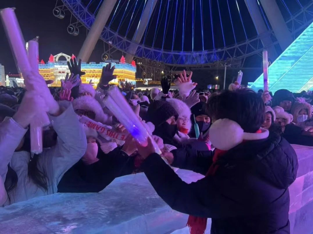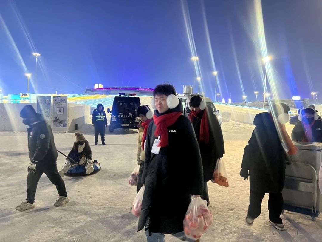 伟德官网志愿者参加“冰雪狂欢耀亚冬”2024-2025哈尔滨冰雪大世界跨年晚会志愿服务活动
