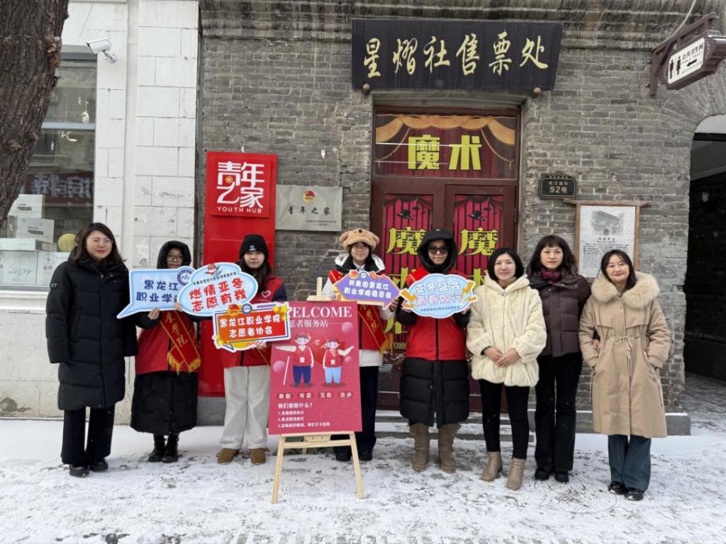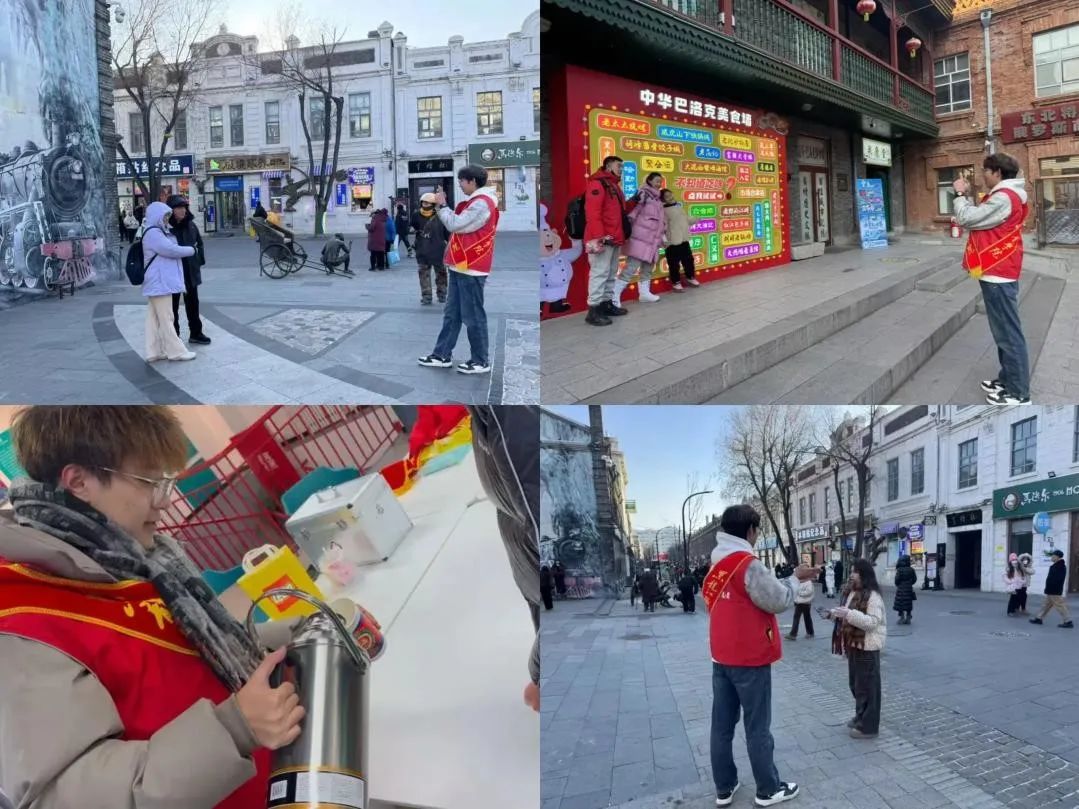 2025年1月9日,哈尔滨团市委副书记刘婷婷、孟春琦;道外团区委副书记刘岩、校团委书记石倩、校团委干事魏然一同前往中华巴洛克街区,对在此进行志愿服务的志愿者们开展了一场温暖人心的慰问活动。
