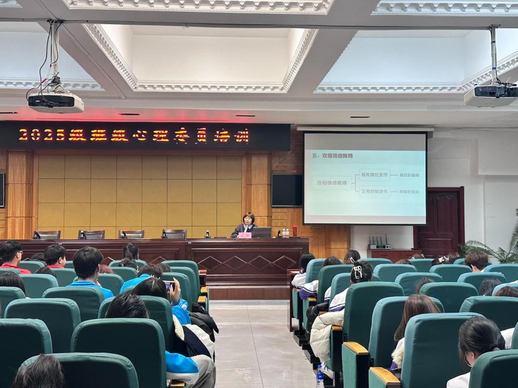 培训活动内容丰富、安排紧凑。隋长羽老师主持开班仪式,明确相关培训要求,还围绕“心理委员工作概述”展开讲解,让心理委员们对自身工作有了初步且系统的认知。崔秀明老师带来“心理健康的标准”“常见发展性问题及识别”的专题讲座,帮助心理委员们掌握心理健康判断标尺与常见发展性心理问题的识别方法;孟妍老师就“异常心理的识别及心理危机干预”进行授课,强化了心理委员对异常心理的辨别能力和危机干预意识;蒙雪老师聚焦“人际沟通及交往”,传授有效沟通技巧,助力心理委员更好地协调班级人际关系;蔡培培老师开展“团体心理活动及示例”的分享,为心理委员组织班级心理活动提供了实用参考。